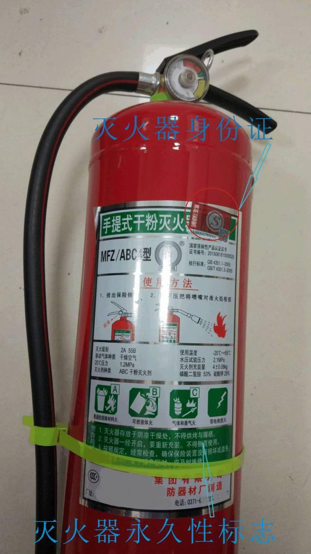 1、干粉滅火器瓶體法定報(bào)廢年限為10年:可通過(guò)壓力表上出廠日期或瓶體有無(wú)身份證判定滅火器瓶體出廠日期(自2008年1月1日起,防火門、滅火器、消防應(yīng)急燈三類產(chǎn)品全面實(shí)行消防產(chǎn)品身份證制度)(如下圖);