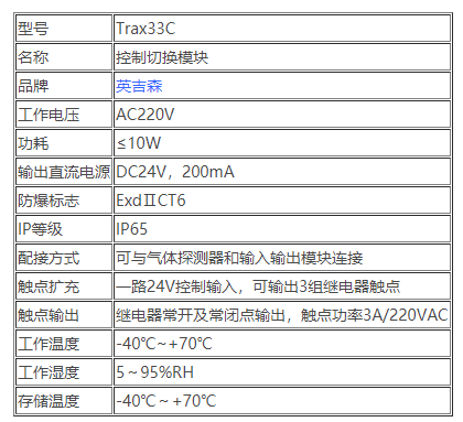 三、Trax33C控制切換模塊技術(shù)參數(shù)