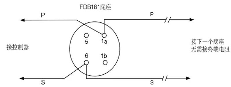 以西門子FC18消防主機為例,回路線是手拉手的形式接回路設備,如圖1。這種形式非常普遍,國內很多廠家的產品都是這樣連接。