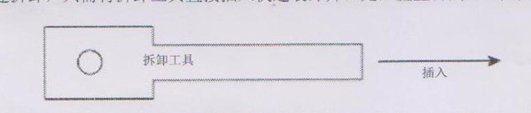 -如要快速拆卸,只需將拆卸工具直接插入快速裝卸開口處,直至聽到“咔嚓”聲;